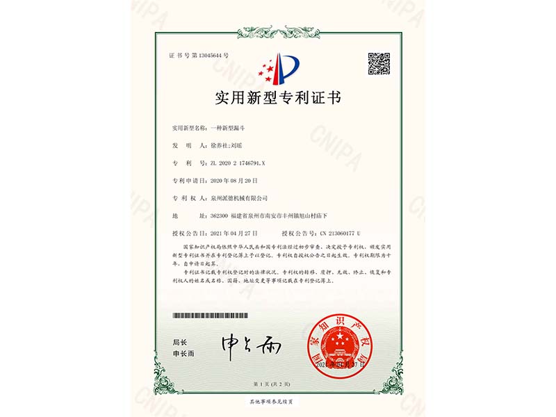 實用新型專利證書(一種防漏抓斗)